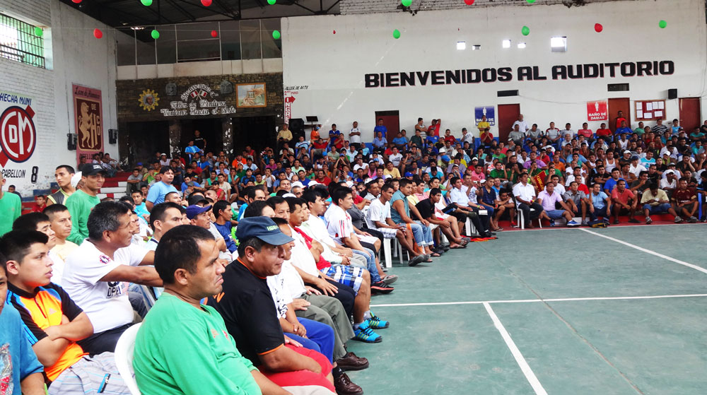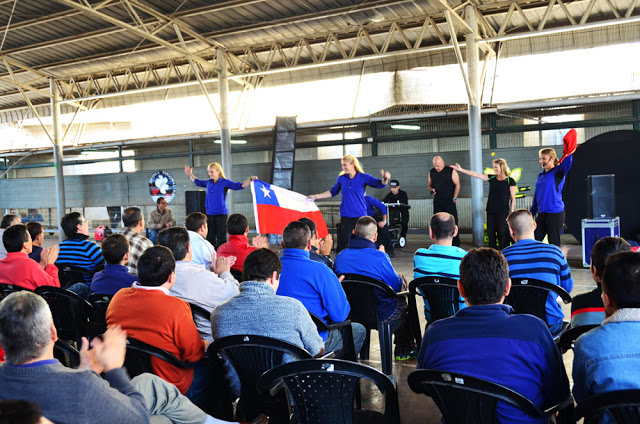 At a prison in Vaparaiso, Chile, they set up for us in a large gym. They actually dimmed the lights, had a spot light and sound system. They had put out a poster all over the prison a month of head of time so we had a huge turn out.