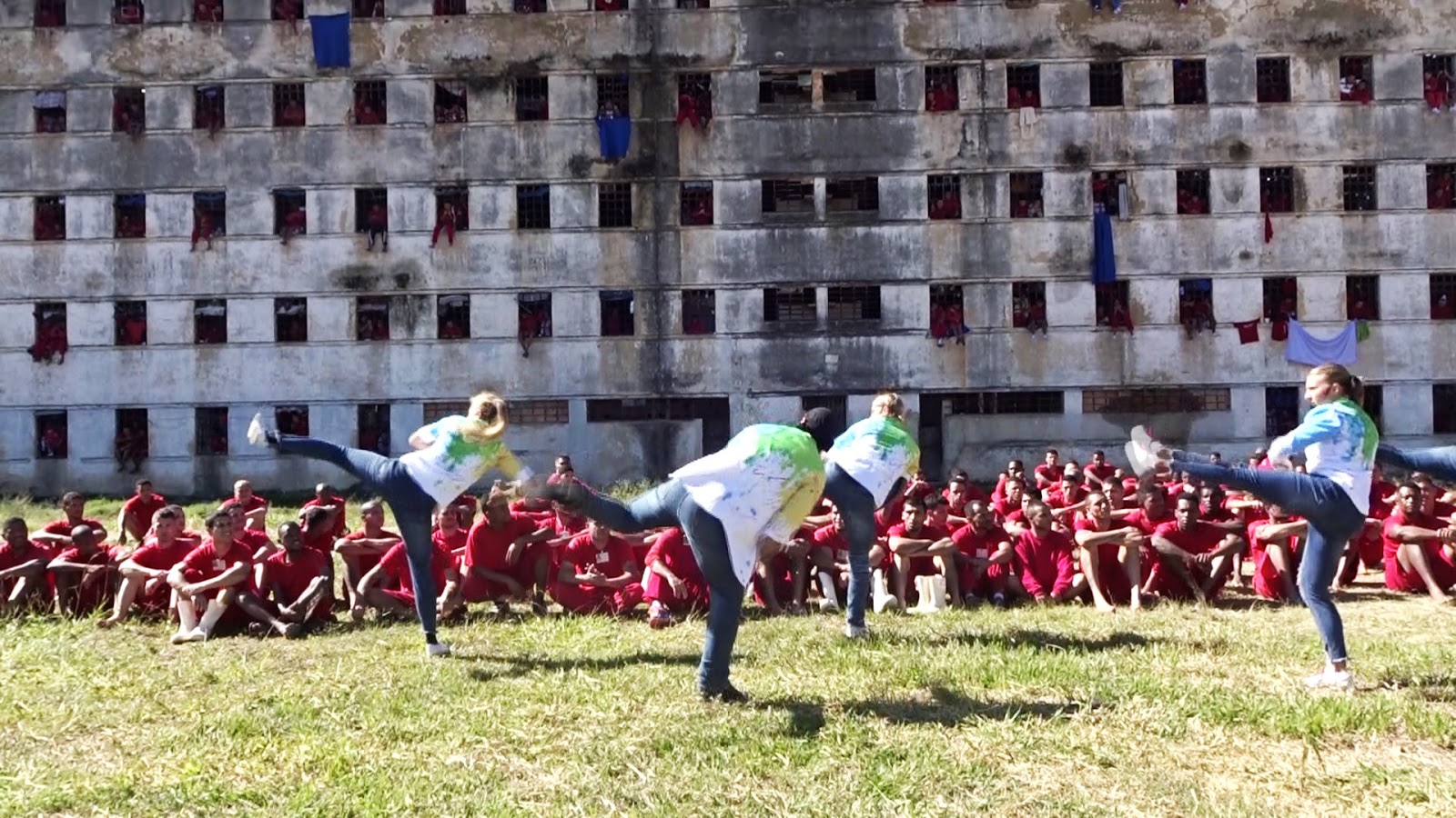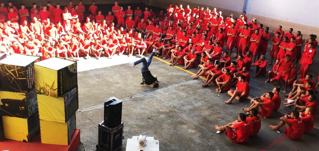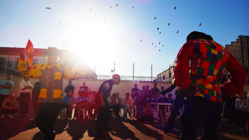 We worked in all the prisons in Southern Brazil, including, one of the largest in Brazil. In that prison, each patio of the prison is run by a gang member, so to enter, you have to have permission from them. The warden of the prison called a meeting with all 26 gang leaders. We had to pitch to them what and why we wanted to put on a performance in their patios. We later received a document with the signatures of all 26 gang members asking us to come. So we spent a lot of time in that prison working in each patio and also building and facilitating an art studio ( you can read past posts about this).