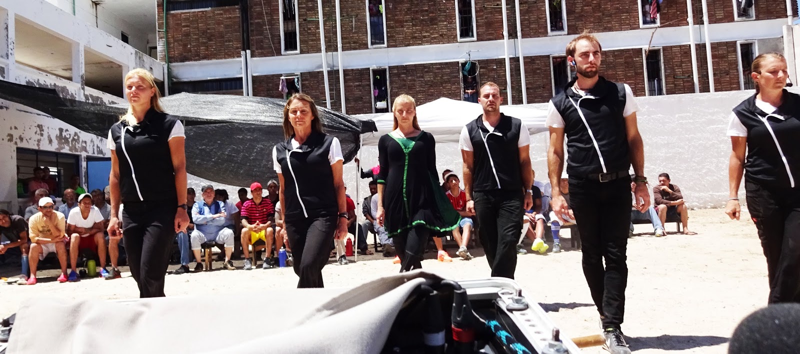 They brought out around 200 men directly in front of us, and then there were 1500 men sitting with their legs through the cells, 5 stories up. I was concerned that it was going to be very hard to keep their attention since there were so many spread out and it would be normal for them to be talking, shouting and distracted. But we were shocked by their absolute silence, respect and attention. It was like even the guys way high up were sitting right in front of us listening. They would cheer so loudly after each act and shout down comments, questions and gratitude.