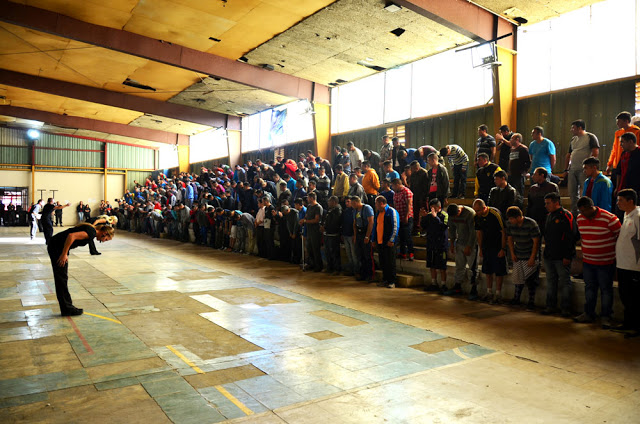 This whole week we have had to be out the door by 6am and back really late, so its been some long days. Another prison we visited holds 1800 men and is over capacity like the large majority of prisons here in Brazil. The state of Minas Gerais, where we are now, has the second largest population of prisoners, second to Sao Paulo. At this prison, after getting through security a guard with a large angry dog led us to the center patio where we set up.