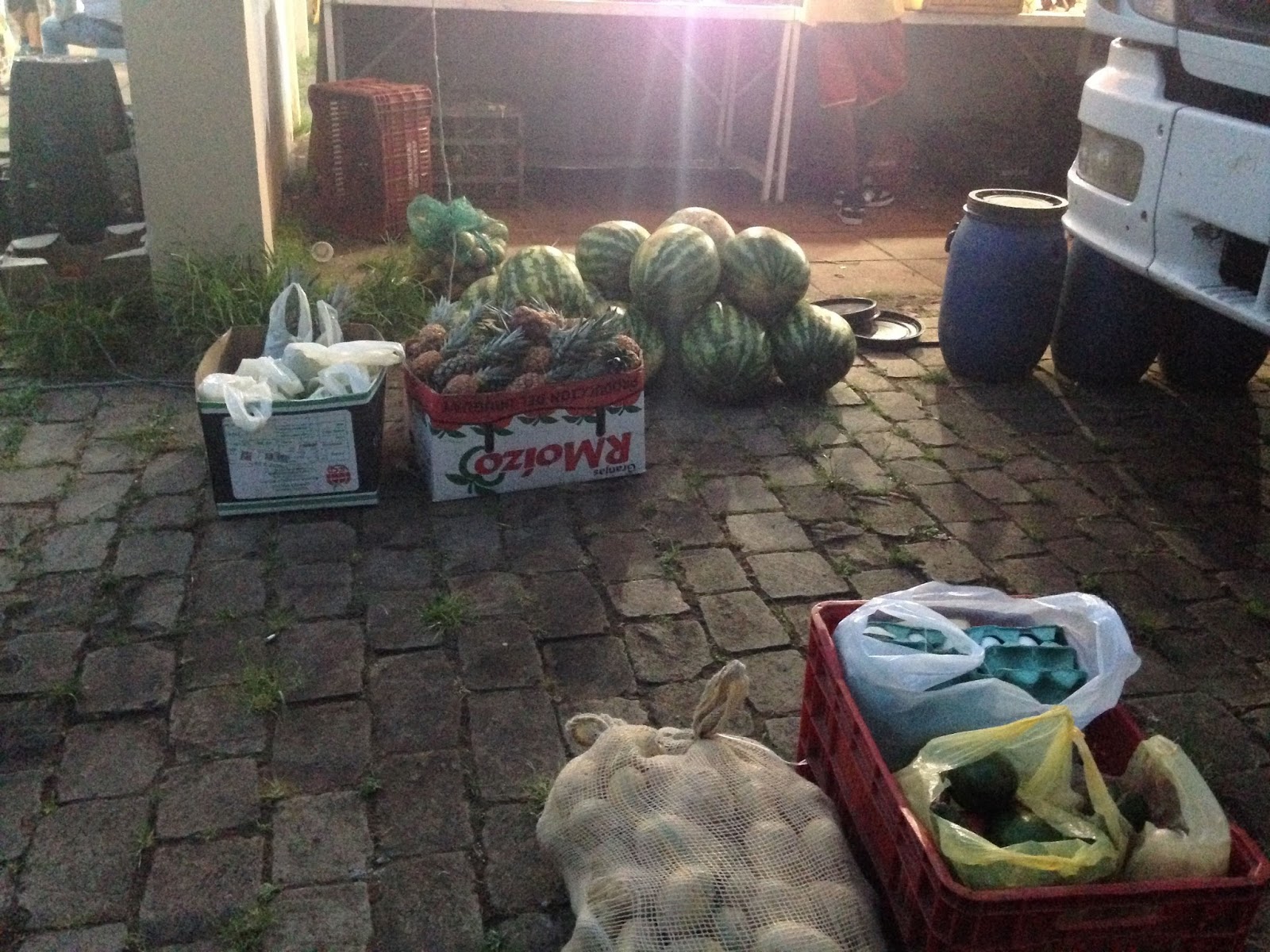 The previous day my sister and I went to the local fruit market and talked to the sellers. We were able to get a bunch of fruit, potatoes, watermelons and beans donated to add to the food we were bringing. The prisoners were so grateful we remembered and came all the way back with more food. We did two performances here again, and reached a lot of guys. No, you are right, watermelons is not exactly the most practical thing to bring into a prison:) but these guys had specifically asked for it so we decided to bring them some this time. But loading 30 watermelons into our van, out of our van, through a scanner (to make sure nothing was inside), off the scanner, onto a cart and then into the patio was….well….fun:) Plus this same process for EVERYTHING else we bring in and out!