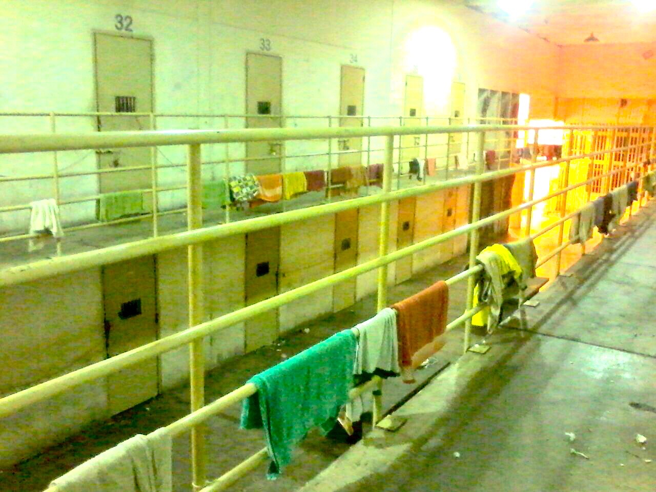 This picture and the one below are the same prison. Most of the day the guys have to stay inside their cells. |