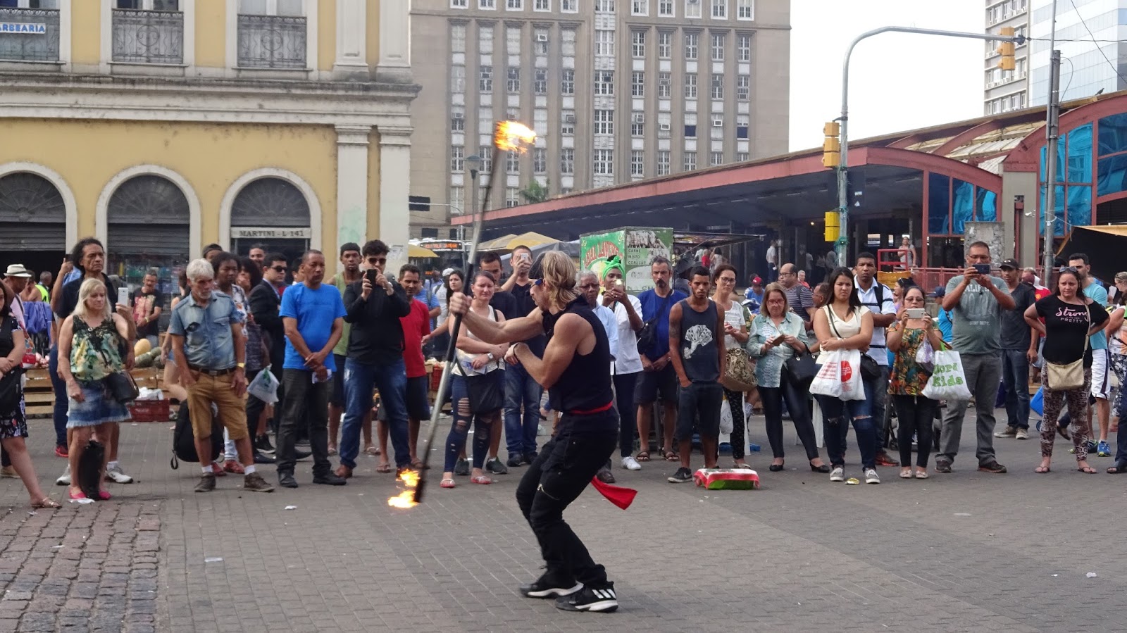Our crowd constantly changes over and some people stay for hours so we are able to touch many, many people in the three to four hours we are down town. We have different acts that are geared to different people so that we can grab them as they walk by and put some solid thoughts into their minds. The martial art of Capoeira is popular here since it originated in Africa and was brought to Brazil by the African slaves. We tell a story about a man, who became a slave, to free the slaves as Jesus did to free us. We act out the death and resurrection in a really cool, non religious way to upbeat african/Capoeira music that really moves people.