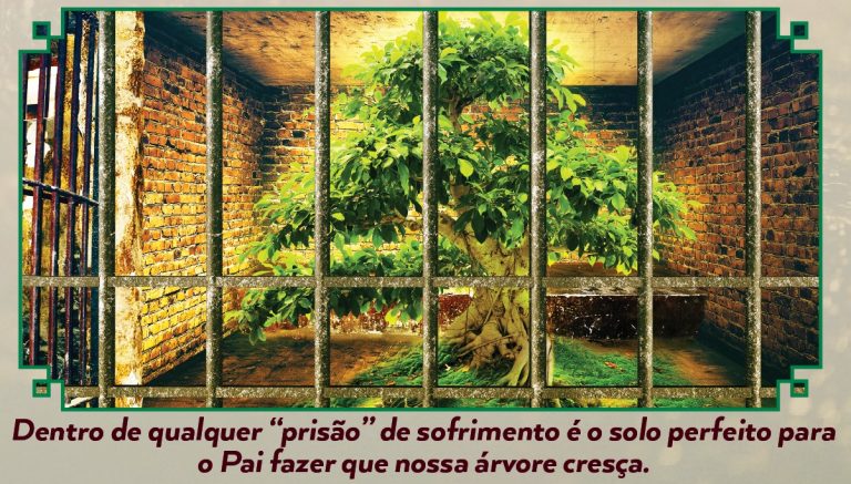 My sister made a magic trick that looks like a miniature prison. She shows it empty inside with nothing except steal bars. Then she makes a flower appear inside. She teaches how even in this terrible place, life can grow. In the place of our hardest suffering, God can bring something good if we yield to Him. In the “soil” of suffering, a tree can grow. We have a poster that my brother made that shows a tree growing behind bars.