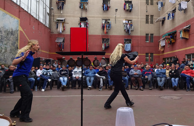 The prisons in Rosario were in absolutely horrible condition and over 100 years old. The day we visited it was freezing. I mean the wind chill brought the temperature into the teens. But despite this lovely weather, the prisoners wanted to come outside to the spot where we performed and did not want to leave. In consideration of them we just kept our show short and then asked them if they wanted to go back inside. They all said no way, they were fine and asked us to do more. I was able to give them each an aluminum survival blanket that someone had donated to me. They all erupted in applause when they understood what they were and that they would bring them some relief from the cold. It was the perfect thing to give them and I was so grateful to have enough to give them each one.