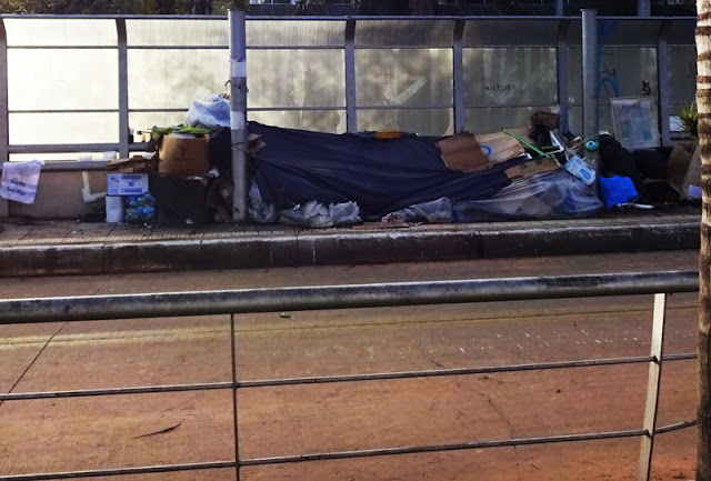 This was a painted under an overpass in Cordoba and in front of it to young boys slept just like in the picture. Under some of the bridges there a number of people living and whole “house” built out of sheets, cardboard and whatever else they can find. We should think twice before we complain about something, don’t you think?