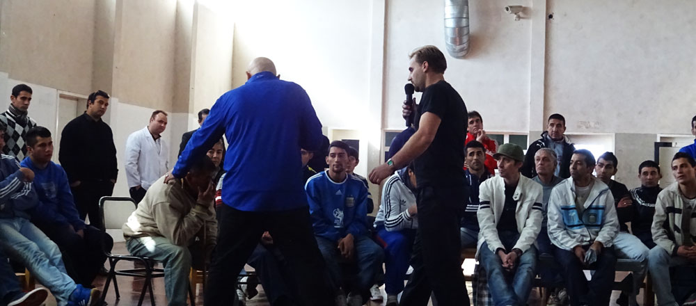 One day in Argentina, I chose to go to a certain prison and ask if I could talk to the director in regards to getting authorization to visit. There was a little window on the door which a guard finally opened after I knocked ten times (like the gate in The Wizard of Oz). He barely listed to what I was asking and then slammed it shut and said no, I could not talk to anyone. After repeating this process a good, oh…60 times until, long story short, I eventually found a door where I found a guy that got a guy that knew a guy that got me to the directer.