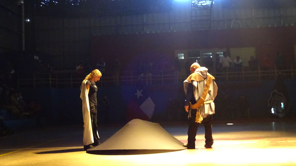 It was really cool doing our Capoeira dance here in Brazil (where it originated). We always get people to participate in a “Roda” (which in short, is a circle in which you play Capoeira with another person while others stand around and clap to the rythmn). In some countries we have to explain what Capoeira is and encourage them to join us but not here! Half the audience came up and crammed on stage waiting to participate and got into 100 percent. It was really fun and the energy was high since all the men were clapping and shouting. Capoeira is a beautiful combination of fighting and dancing. There are schools all over if perhaps you were ever interested in learning some, besides being fun it is great exercise.